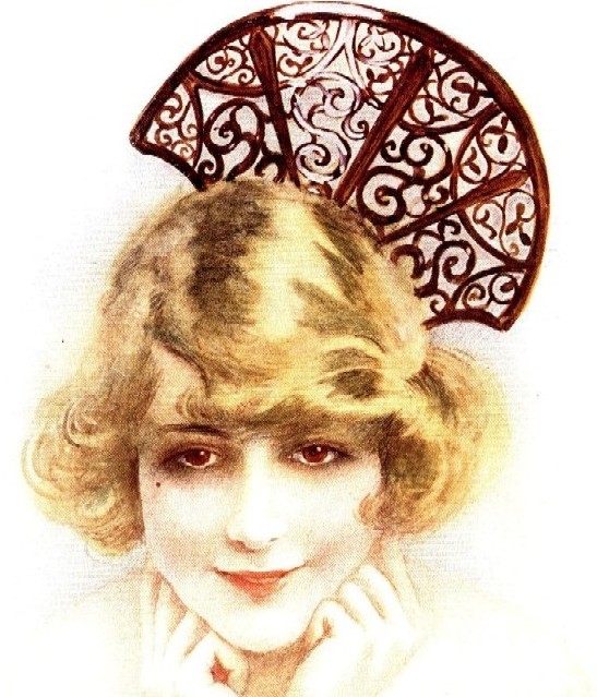 The final picture is taken from a French magazine and shows a sitter with a similarly over sized large hair comb worn at an acute angle.