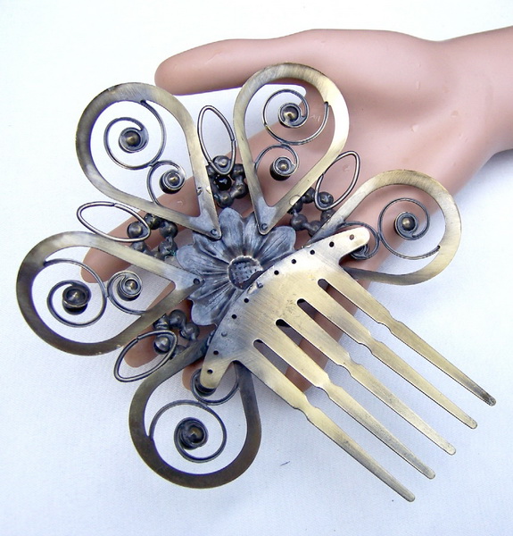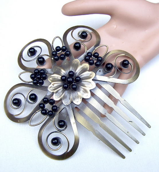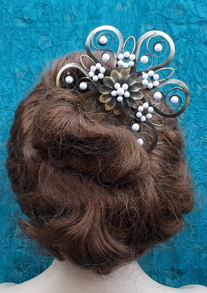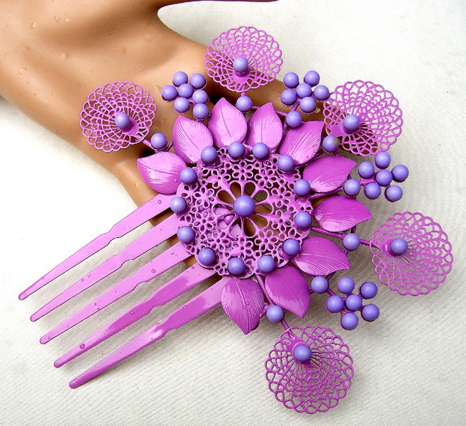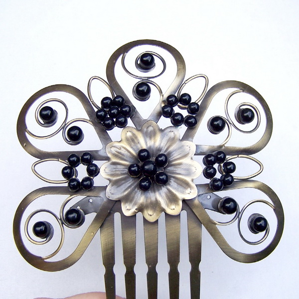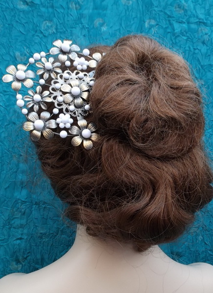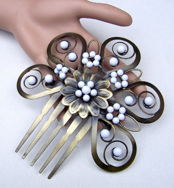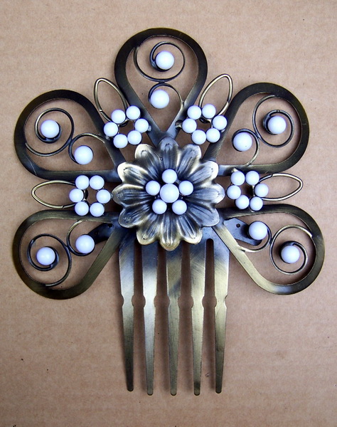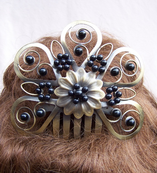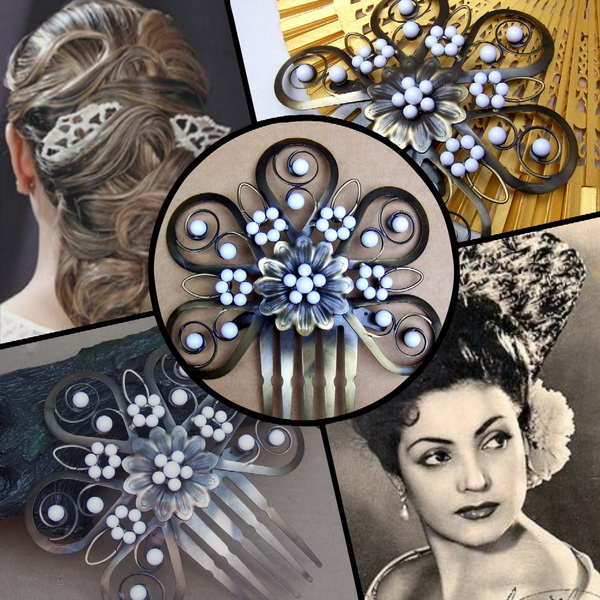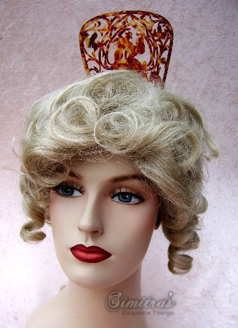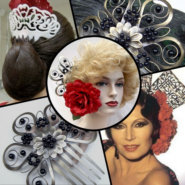 This handsome vintage Spanish mantilla comb or peinita can be worn with a lace mantilla veil to produce an authentic effect, as seen on the mannequin.
