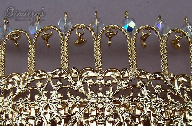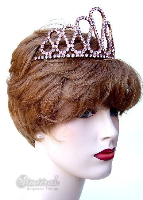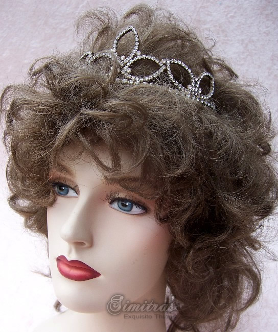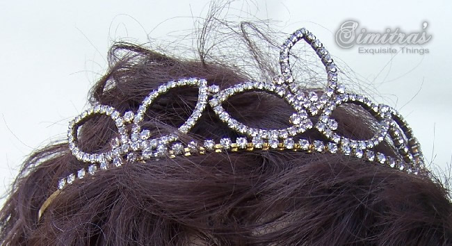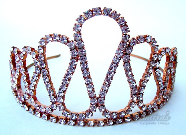 The beautiful arcaded design is a classic one with very bright sparkling prong set rhinestones. This would be ideal for a bride who likes something different, as well as for a prom or pageant.